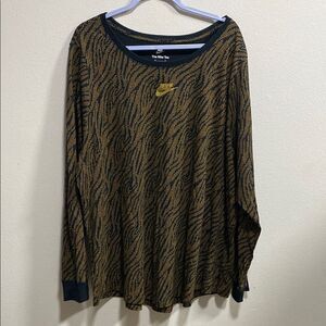 Nike Tee Long Sleeve 3X Gold Print Black Star Animal Print Cotton Oversized