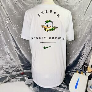 Nike Tee Mighty University Oregon Ducks Women XL White Double Side Puddles Shirt