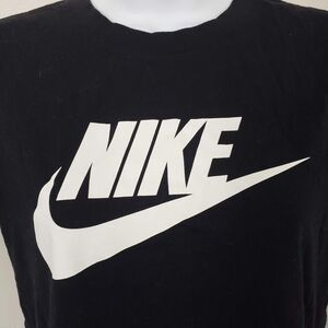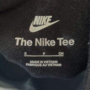Nike Tee Women's Small Black Short Sleeve Shirt White Logo Check Athletic