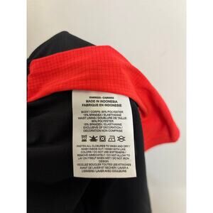 Nike Dri-FIT Run Division Tempo Luxe running shorts in black with bright crimson accents. Features side mesh panels with adjustable zippers for customizable ventilation, reflective elements for visibility, and an inner brief lining for support. Constructed from 85% polyester and 15% spandex with Dri-FIT moisture-wicking technology and a 3" inseam. Good pre-owned condition.
