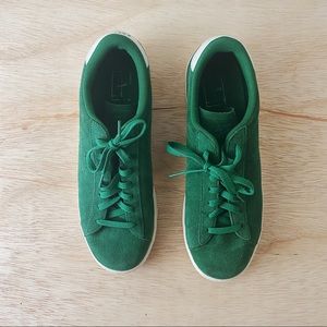 Gently used Nike Tennis Classic shoe in Green Suede. Men’s sneaker size 10.5 or could be unisex and women’s size 12.
