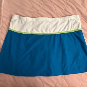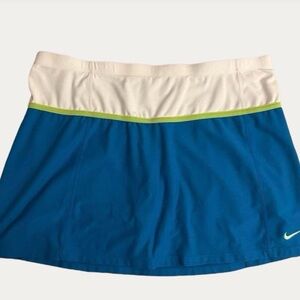 Nike Tennis Skort size L (12-14) in blue white and green. Soft & stretchy. Great condition. No rips/stains/flaws.