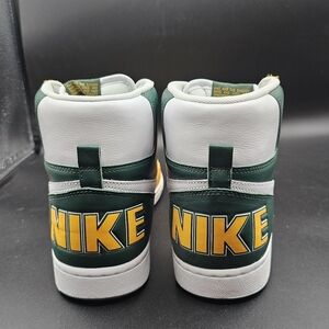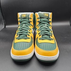 The Nike Terminator High athletic sneakers feature a leather upper for durability and a padded, high-top collar for an old-school look. The rubber outsole provides durable traction, and perforations on the toe allow airflow. These high top sneakers have a lace-up closure.