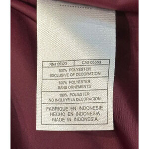 The Nike Texas A & M Jacket is a stylish and functional burgundy puffer coat in unisex size small. Made of polyester with a softshell fabric type, this mid-length jacket features a full zip closure, lightweight design, and water-resistant and wind-resistant properties. The jacket includes logo accents, pockets, and is machine washable, making it ideal for travel and casual occasions in the fall and spring seasons. The regular fit and solid pattern make it a versatile choice for outdoor and sports-themed outfits.