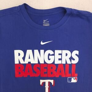 Nike Texas Rangers Casual Graphic Cew Neck Baseball T Shirt Mens Size L Blue
