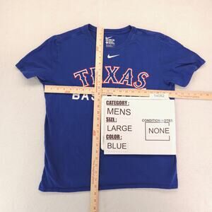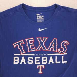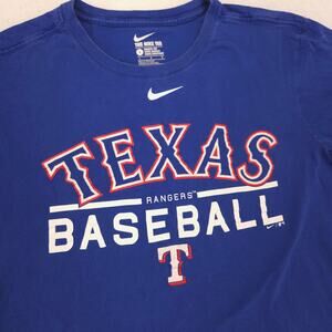 Nike Texas Rangers Casual Graphic Cew Neck Baseball T Shirt Mens Size L Blue