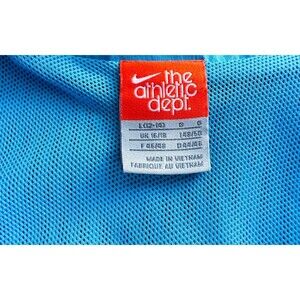 Nike 'The Athletic Dept' Women's Vintage 90s Blue w/ Black Piping Trim Full Zip Windbreaker Jacket Size Large. It has 2 lower front hand pockets and features a mesh liner for breathability. It's in excellent condition and there are no holes, rips, or stains. Please look at and zoom in on the pics.