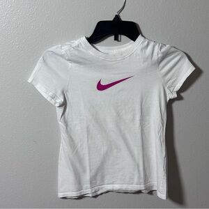 Classic white Nike tee. Athletic cut. Comfortable and stylish. Nike The Nike Tee Kids White T-Shirt Athletic Cut Girls size M. Slightly used. Excellent condition. Smoke free home. No issues.