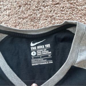 Nike The Nike Tee Short Sleeve T Shirt. Mens size small. Black with light ash gray colorblock and swoosh graphic logo on front. Like new!