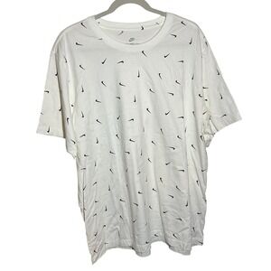 Keywords: Nike, The Nike Tee, T-shirt, Men's, XXL, White, Black, Swoosh, All Over Print, AOP, Crew Neck, Casual, Athletic, Streetwear, Modern