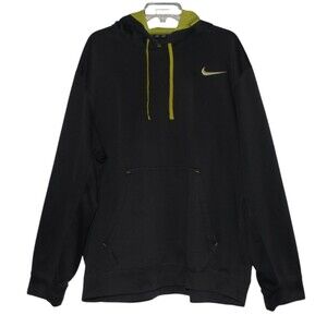 Nike Therma Fit Hoodie Men XXL 2XL Gray Neon Yellow Sweatshirt Kanga Pocket