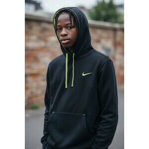 The Nike Therma Fit Hoodie in Men's XXL size is a stylish and comfortable sweatshirt in gray with neon yellow accents. This pullover hoodie features a drawstring closure, hooded neckline, and a lined interior for added warmth. The hoodie is made of polyester material, making it easy to care for with machine washable instructions. With its vintage feel and Nike branding, this hoodie is perfect for gym & training activities during the winter, fall, and spring seasons. The Kanga pocket adds a practical touch to this versatile and trendy activewear piece. No rips, tears, holes or stains.