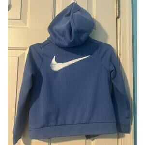 Nike Therma Fit Hoodie Small 17" (4/5 Years) Blue Full Zip White Logo