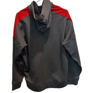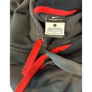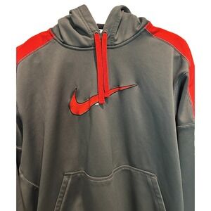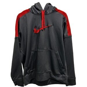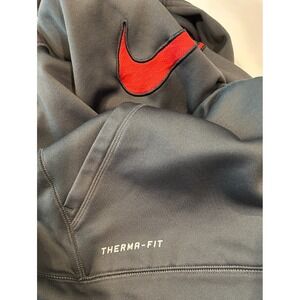 Nike Therma Fit Men's Hoodie Dark Gray with Red Trim Kangaroo Pocket Drawstring