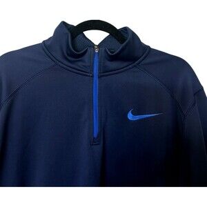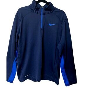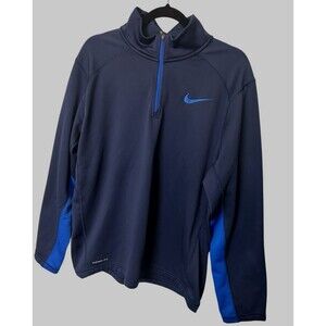 Nike Therma Fit Mens L Blue 1/4 Zip Swoosh Pullover Long Sleeve Sweatshirt