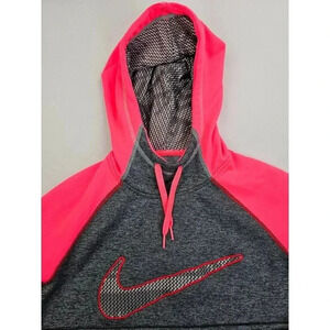 Nike Therma Fit Size Small Women's Pullove Gray Pink Sleeves Thumb Slot Hoodie