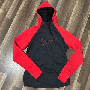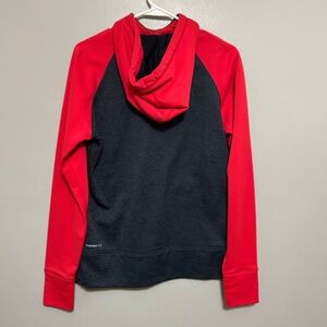 Nike Therma Fit Womens Hoodie M Gray Red Long Sleeve Pullover Activewear Sweater