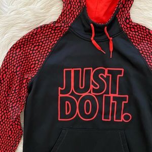 Nike Therma Fit Womens Just Do It Black Red Polka Dot Pullover Hoodie Sweatshirt