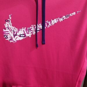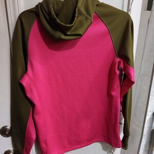 Nike Therma Fit Womens Pink Green Pockets Athletic Running Hoodie