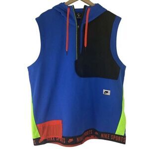 Introducing the Nike Therma NSP Sleeveless zip T-Shirt vest for men in size L. This stylish vest comes in a beautiful shade of blue and is made of high-quality cotton material. The vest features a convenient zip closure and is branded with the world-renowned Nike logo.