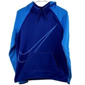 Nike Therma Swoosh Hoodie Pullover Colorblock Thumbhole Fleece Athletic Blue S
