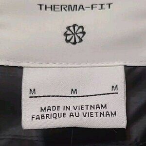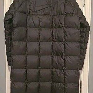Elevate your activewear game with this Nike Sportswear Swoosh PrimaLoft Therma-Fit Oversized Parka. The black jacket is made with a polyester blend outer shell material and features a zip closure. The parka is perfect for all seasons, whether you're walking, skiing, hiking, running, or jogging. It comes in a women's medium size and is machine washable.