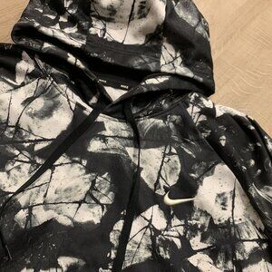 Nike Therma-Fit Hoodie Men's XL Training Sweatshirt DQ4836-010 Black/Coconut Milk Fitness Pullover Embroidered Swoosh Sleeve Zip Pocket Floral AOP Sportswear