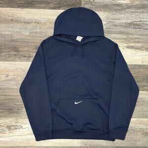 Nike Therma-Fit Navy Blue Mens M Fleece Pocket Center Swoosh Pullover Sweatshirt Hoodie