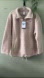 Oversized-fit, I'd say this can fit as a Women's Large. Cute and cozy! :) Cream-colored (see the up-close shots for most accurate in-person depiction). Embroidered swoosh logo. This oversized teddy jacket has one large front pocket, an adjustable lace tie at the waistline, and a pretty funnel-neck design. Brand new condition.