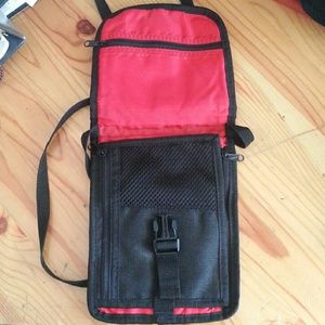 NWOT. Small and convenient for hangouts and sport activities. Large enough to hold bare essentials. Many pockets for oranization. About 6" in height and 4" in width.