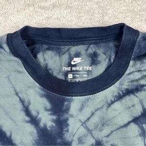 Step up your streetwear game with this Nike Tie-Dye T-Shirt in men’s XXL. Featuring a bold navy blue spiral design, this classic “The Nike Tee” is made from soft cotton and sports an embroidered Nike swoosh logo at the chest.