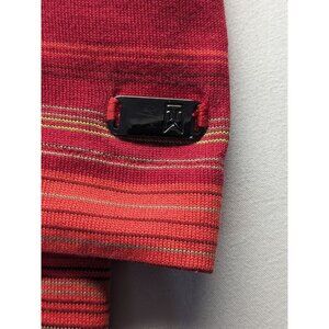 This men's L Nike polo shirt from the Tiger Woods Collection is a stylish red color with a striped pattern, made of Polyester(+1) material. It features Dri-Fit technology, perfect for golfing.
