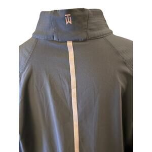 Nike Tiger Woods Collection 1/4 Zip Golf Pullover, Men's Size Large. Elevate your golf wardrobe with this premium Nike Tiger Woods Collection quarter zip pullover. Designed with performance and style in mind, this piece features a lightweight, breathable fabric with a textured upper and smooth lower panel for dynamic movement. It has a sleek slate blue with light gray trim, Nike Swoosh on the chest, and "TW" logo on the back collar. Reflective vertical stripe down the back adds visibility and a bold design touch. Excellent condition.