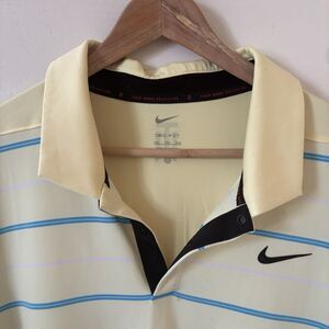 Nike Tiger Woods Men Golf Polo Shirt XXL Yellow Striped Dri-Fit Performance Logo