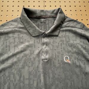 Nike Tiger Woods Polo Shirt Mens Large Black Quail Hollow Golf Digital Camo Logo