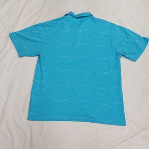 Nike Tiger Woods Shirt Mens Size Large Blue Textured Short Sleeve Polo Embroidered. Please see pictures for condition and measurements for proper sizing and fit.