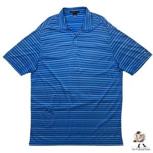 NIKE TIGER WOODS SHIRT MENS XL EXTRA LARGE BLUE STRIPED DRI FIT SNAP BUTTON POLO