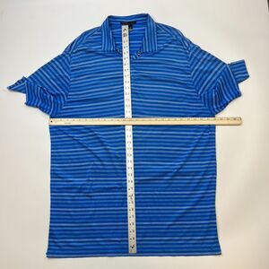 Nike Tiger Woods Shirt Mens XL Extra Large Blue Striped Dri Fit Snap Button Polo
