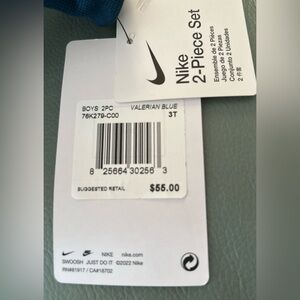 This is a brand new toddler boy's set from Nike. It includes pants and a zip up jacket with front pockets. The color is called "Valerian Blue." Perfect all year round for your little guy!