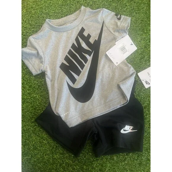Nike Toddler Boys Dri-FIT T-Shirt & Shorts Outfit Set 2T Black Gray Athletic A5