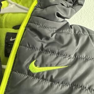 Nike Toddler Boys Puffer Coat Jacket Size 18 Months Hooded Gray/Neon