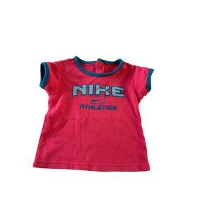 Nike Toddler Girl Baby Size 24 months Spellout Logo Pink With Blue Tshirt Tee Shirt Top 100% Cotton