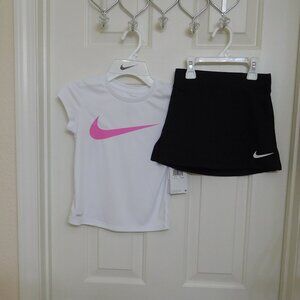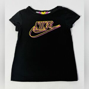 Nike Toddler Girl Outfit Shorts Set 4T Black Logo T-Shirt Top Shorts Gray Neon