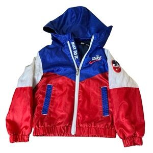 Nike Toddler Red White & Blue Color Block Hooded Fleece Lined Jacket Size 2T