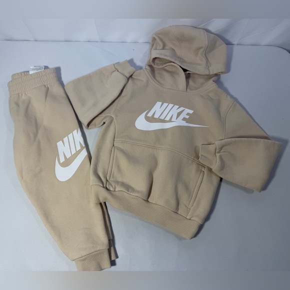 Nike Toddler Sweatsuit Set Hoodie Top Joggers Pants Beige Tan XS 4 Unisex Fleece