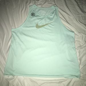 "The Nike Tee" sleeveless mint green ideal for SOCCER, FOOTBALL, RUNNING, JOGGING, MARATHONS, VOLLEYBALL, BASKETBALL, LACROSSE, TENNIS, HIKING, CLIMBING, BODY BUILDING, POWERLIFTING, WEIGHTLIFTING, GYMNASTICS, CHEERLEADING, POM POM, DANCE SQUAD, DRILL TEAM, BASEBALL, SOFTBALL, WORKING OUT, SQUATTING, DEADLIFTING, GOLF, CROSSFIT, HIIT, ZUMBA, KICKBOXING, Yoga, Cycling, Spinning, Metcons, Hiking, Aerobics, Pilates, Walking, Jazzercise, WOD, olympic weightlifting, etc.