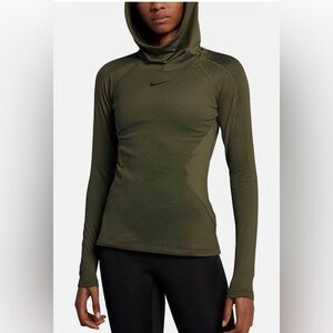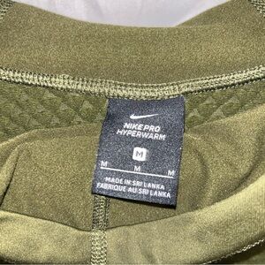 Nike Top Pro Hyperwarm Green Fitted Hoodie Sweatshirt Mock Neck Long Sleeve