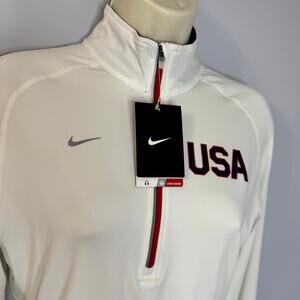 Nike Top White 1/4 Zip Dri Fit Running Team USA Olympic Performance S New