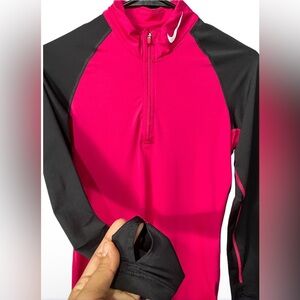 Nice Nike Top. Pink With Black Sleeves With Thumb Holes. Half Zip. Perfect For Fall And Winter.