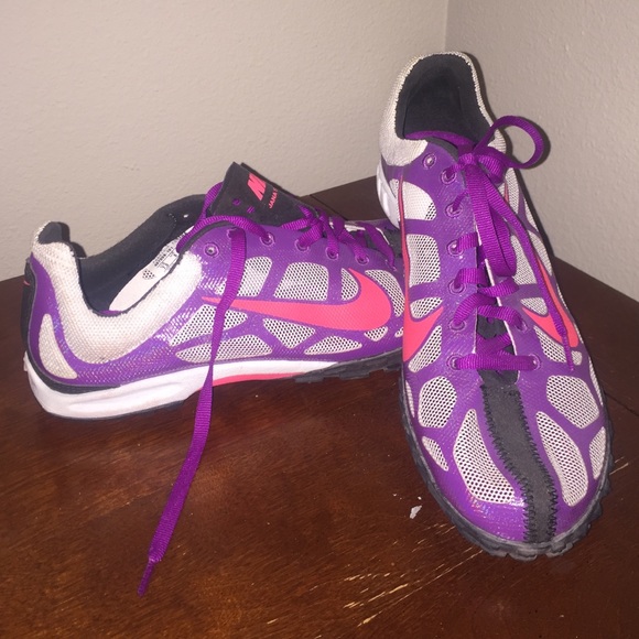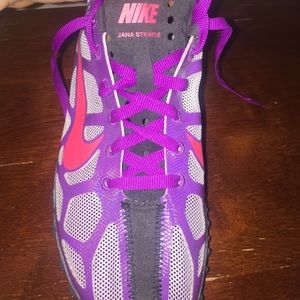 Nike Track & Field sprinters shoes! Size 7.5. Worn once in a 60 meter indoor race. Breathable, light weight, great traction, colors: purple, white, peach. Brand: Jana Star Waffle. Also great for cross country/distance running.